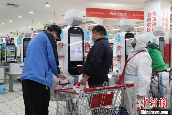 15日,吉林市市民在超市有序购物。 苍雁 摄